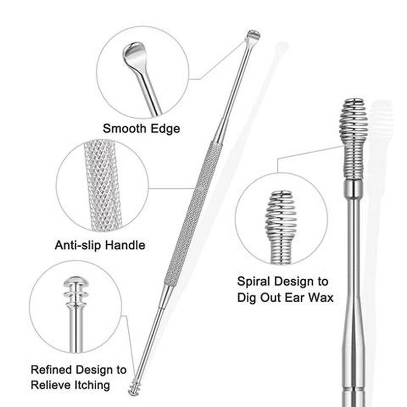 - Acero inoxidable de alta calidad: Especialmente diseñado para extraer el exceso de cerumen de forma segura y cómoda, y fácil de limpiar
